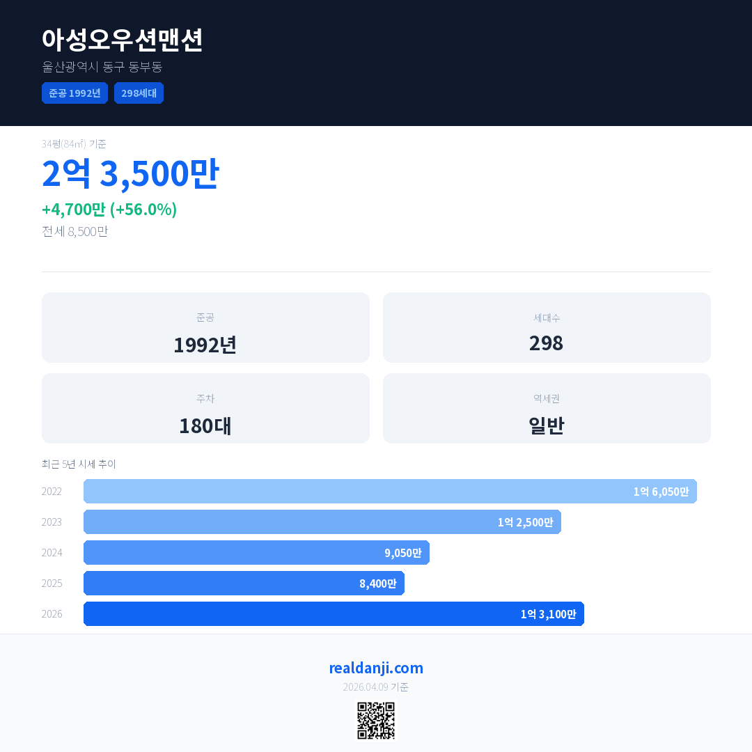 아성오우션맨션 최근 거래가는 2억 3,500만입니다. (2026-02)