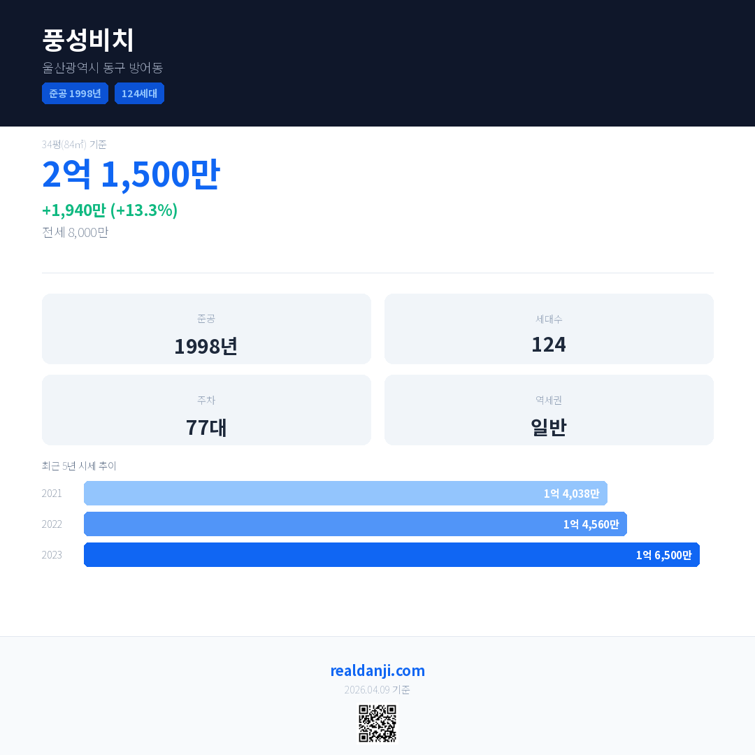 풍성비치 최근 거래가는 2억 1,500만입니다. (2026-04)