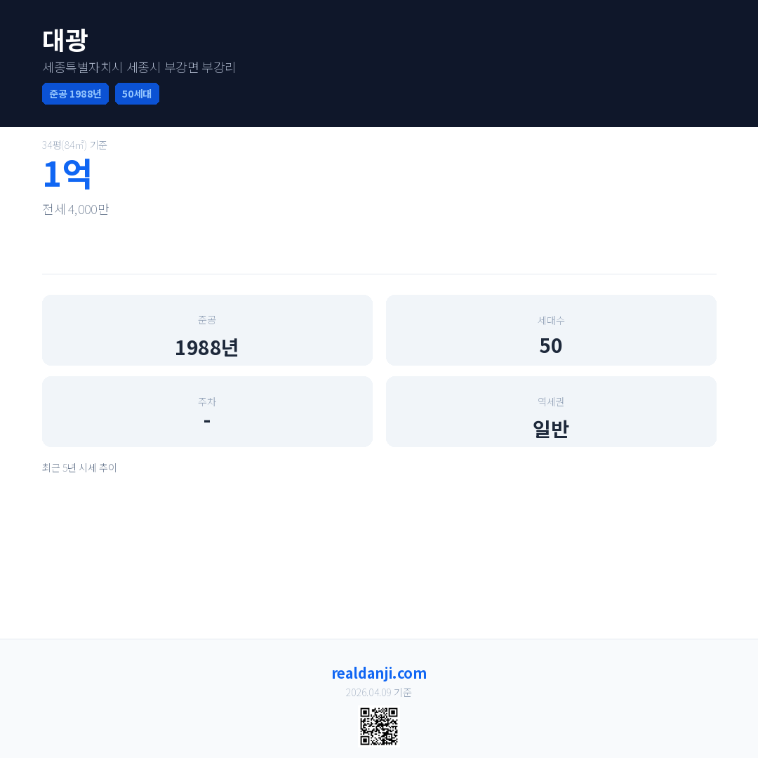 대광은(는) 1988년에 준공되었으며, 현재 38년차입니다. 총 50세대 규모입니다.