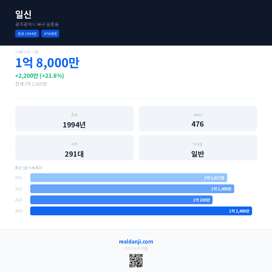 일신 국민평형 기준 2025년 평균 거래가는 1억 2,400만으로, 전년 대비 21.6% 상승 했습니다.