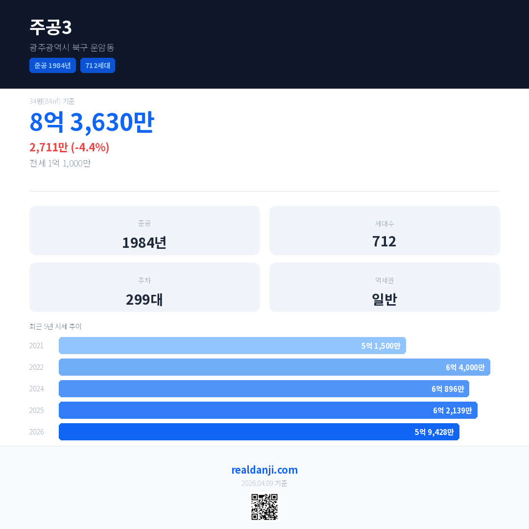 주공3 최근 거래가는 8억 3,630만입니다. (2026-03)