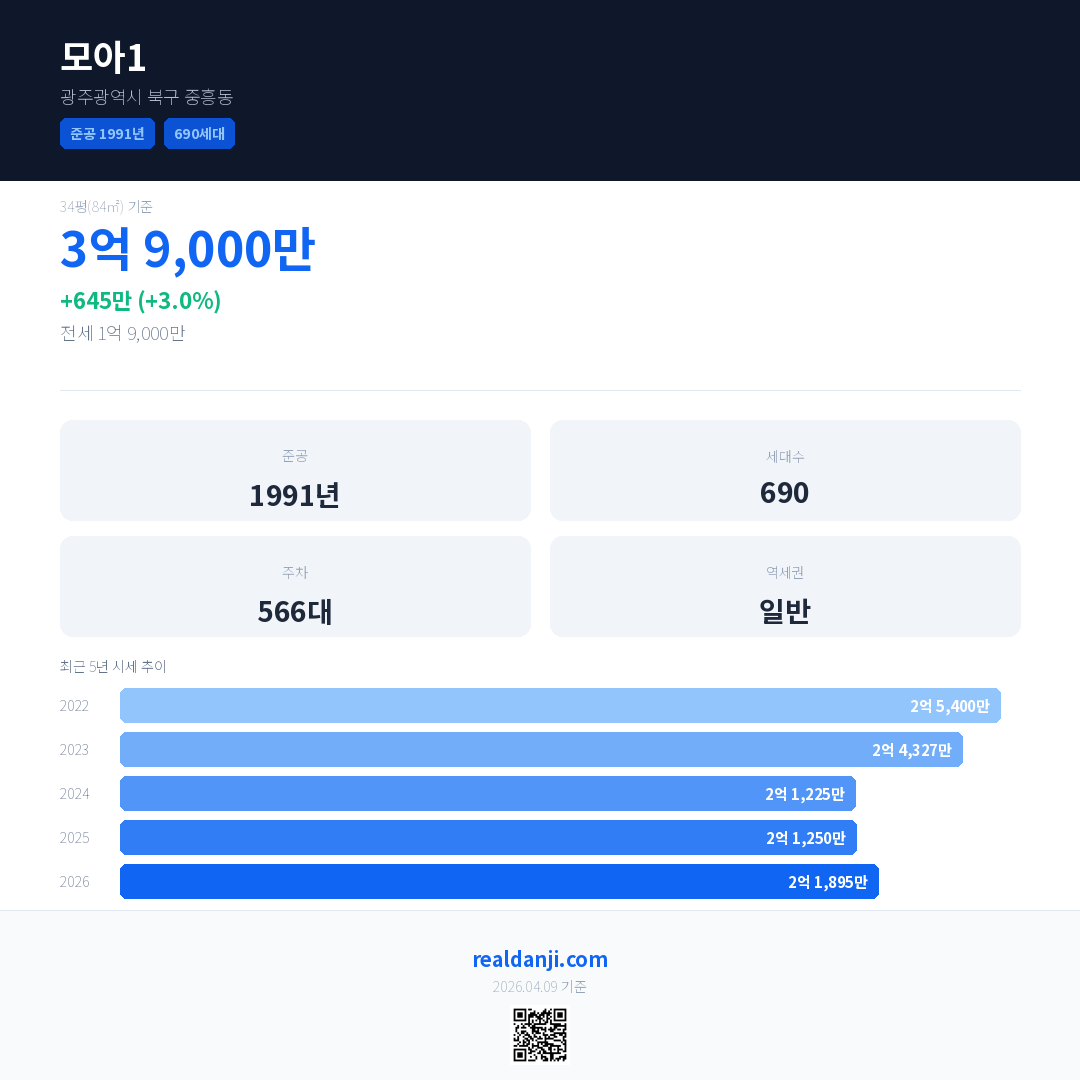 모아1 최근 거래가는 3억 9,000만입니다. (2026-03)