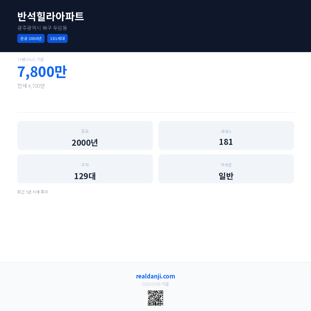 반석힐라아파트 최근 거래가는 7,800만입니다. (2026-03)