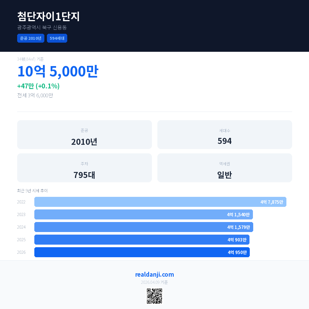 첨단자이1단지 최근 거래가는 10억 5,000만입니다. (2026-04)