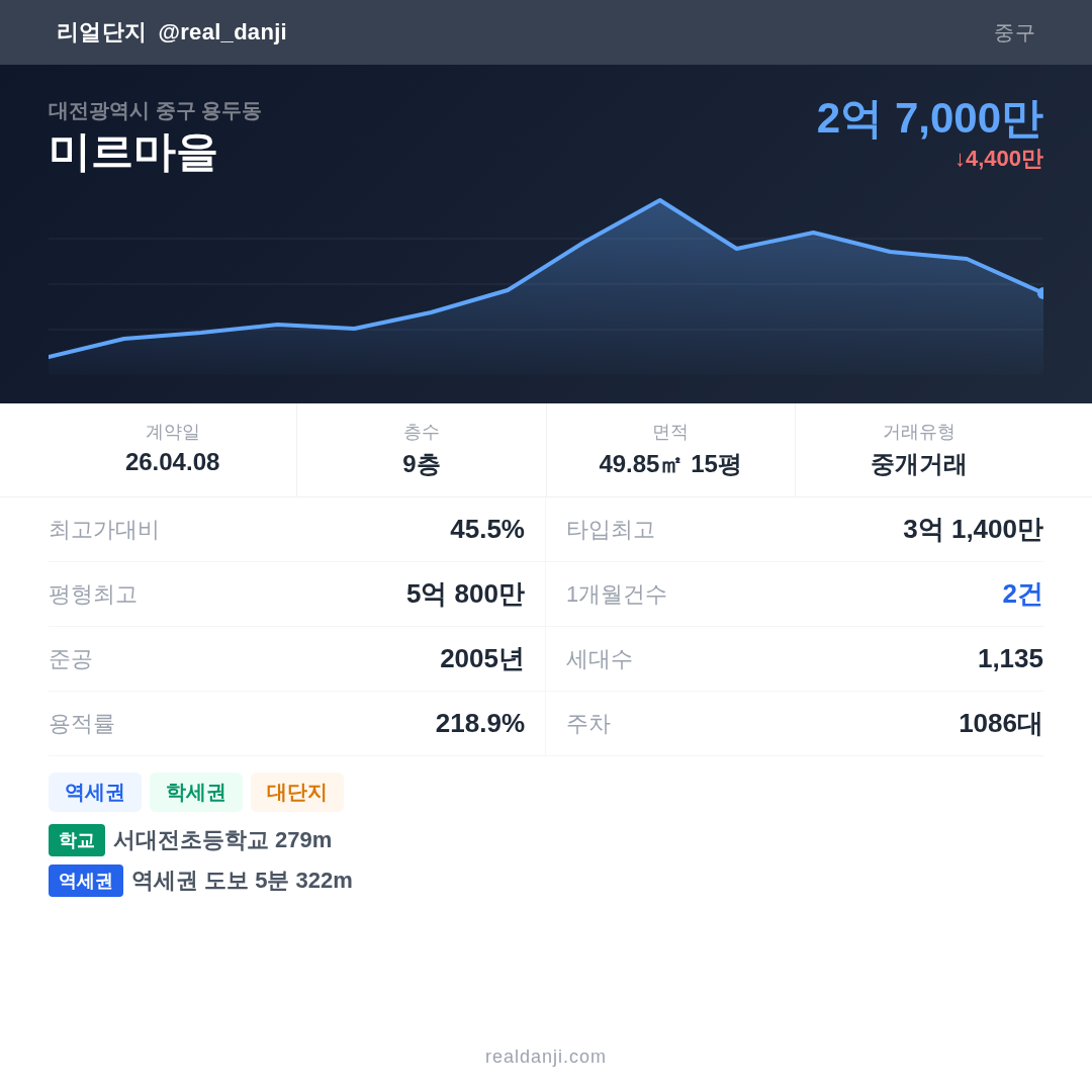 | 2026.04.08 | 50㎡ | 9층 | 2억 7,000만 |