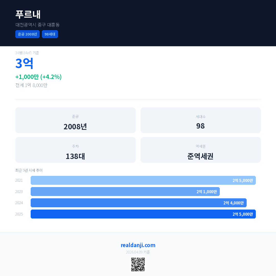 푸르내 최근 거래가는 3억입니다. (2025-02)