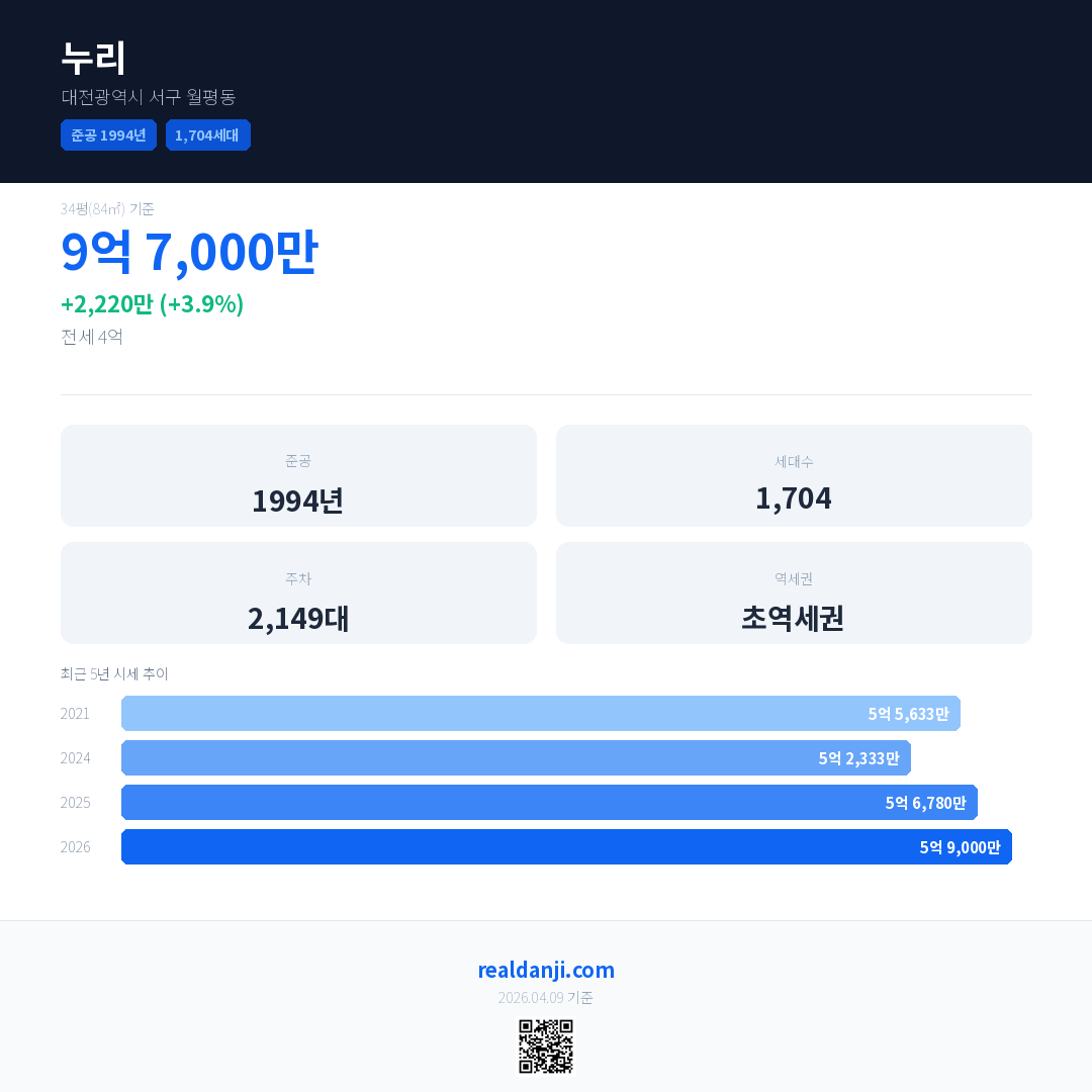누리 최근 거래가는 9억 7,000만입니다. (2026-03)