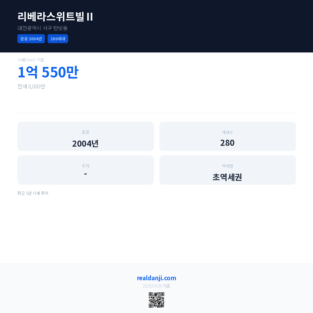 리베라스위트빌Ⅱ 최근 거래가는 1억 550만입니다. (2026-03)