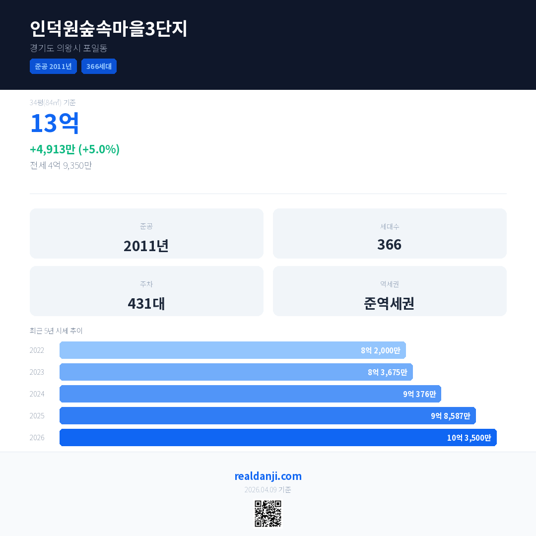 인덕원숲속마을3단지 최근 거래가는 11억 3,500만입니다. (2026-03)