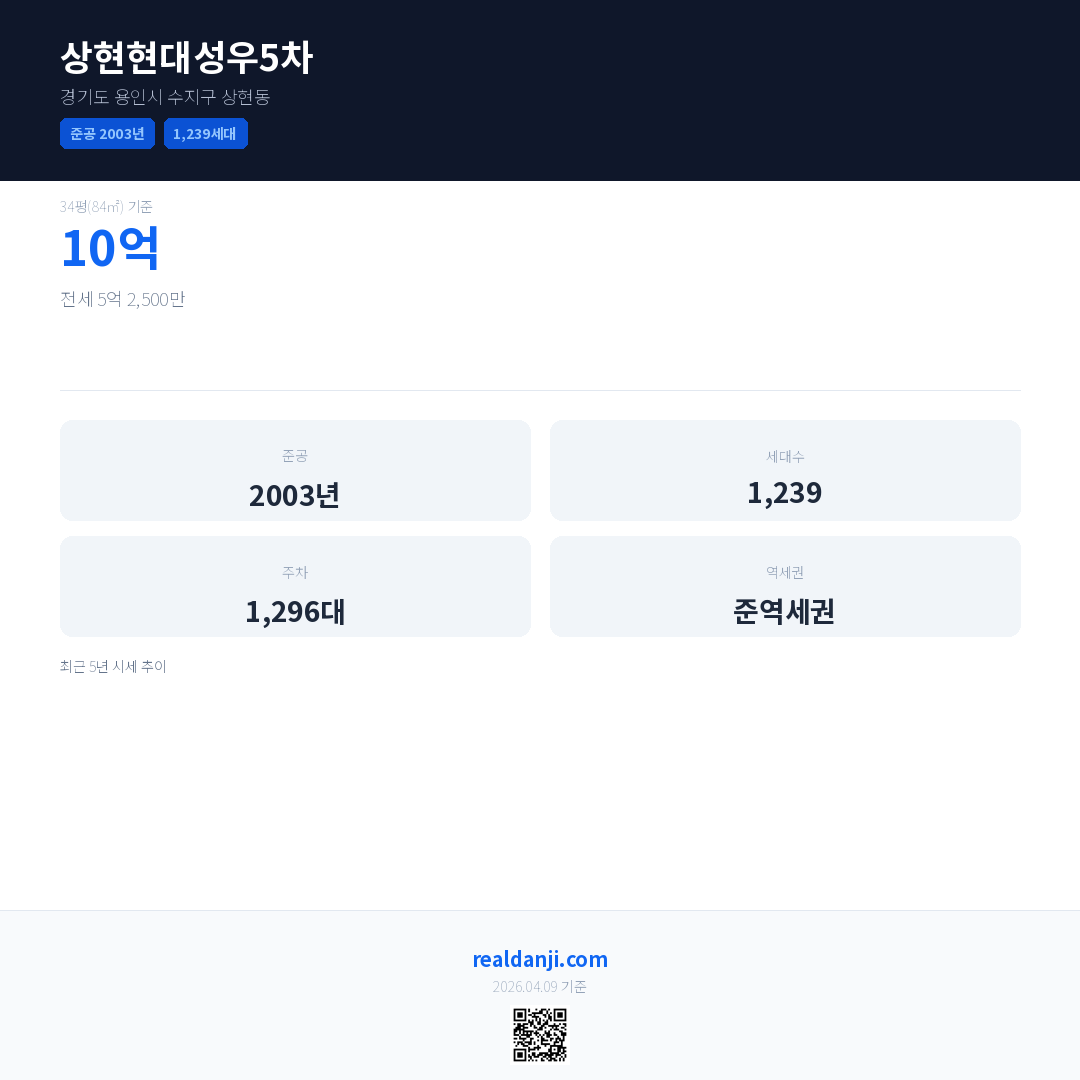 상현현대성우5차 최근 거래가는 10억입니다. (2026-03)