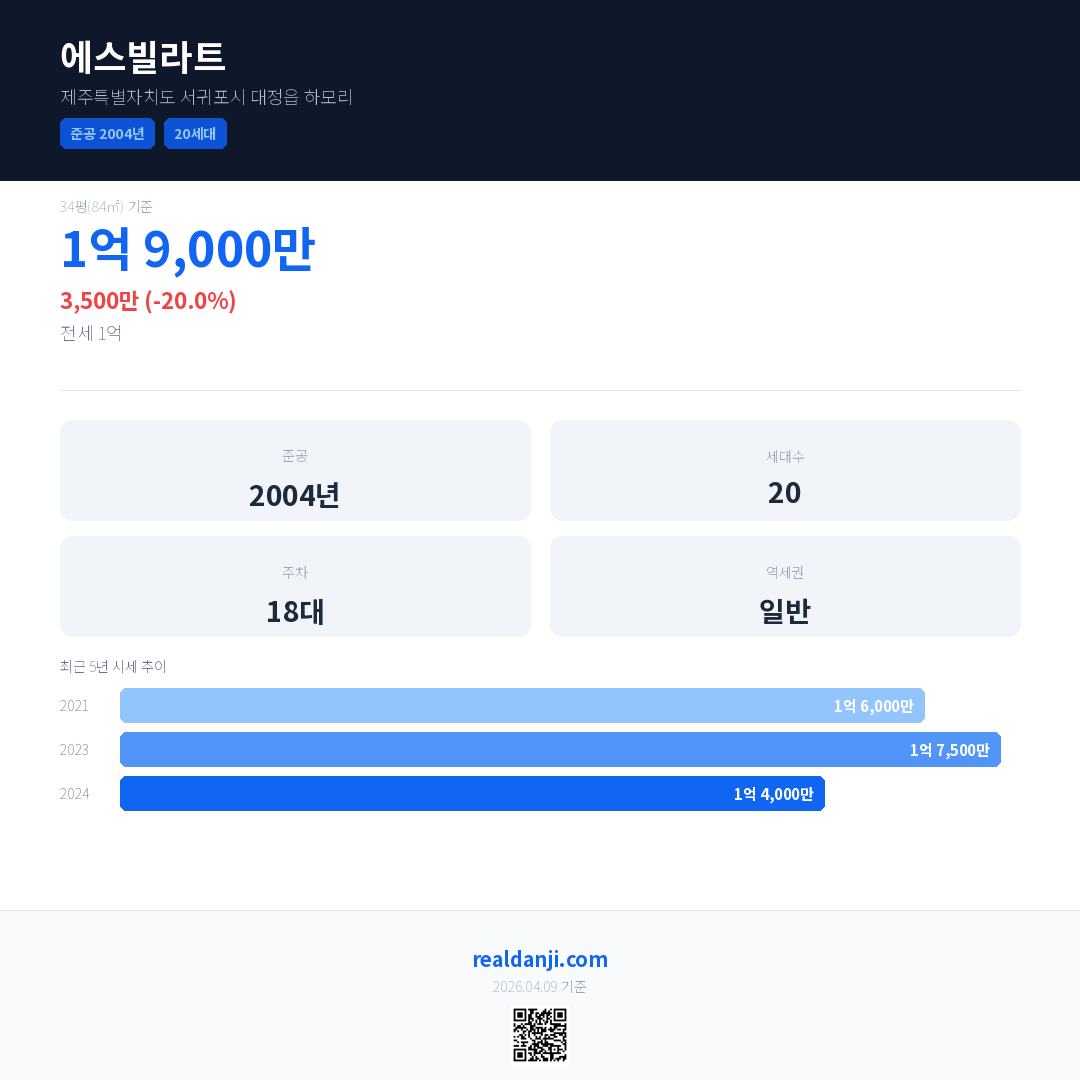 에스빌라트 최근 거래가는 1억 9,000만입니다. (2024-04)
