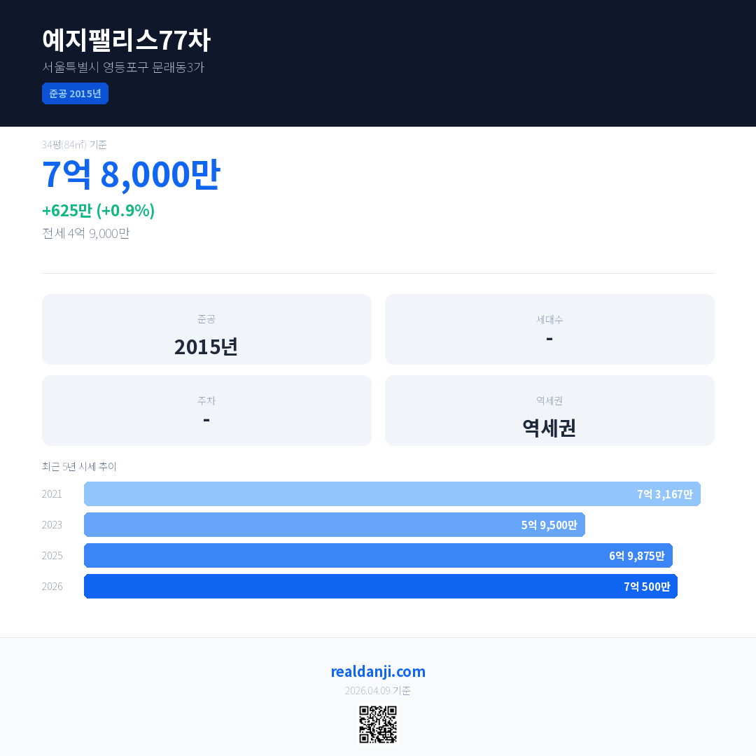 예지팰리스77차 최근 거래가는 7억 8,000만입니다. (2026-01)