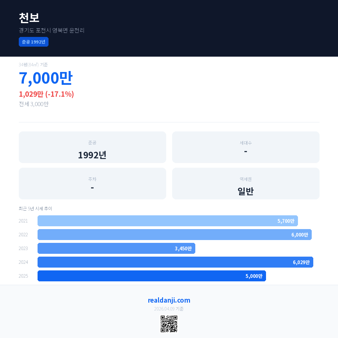 천보 최근 거래가는 7,000만입니다. (2026-02)