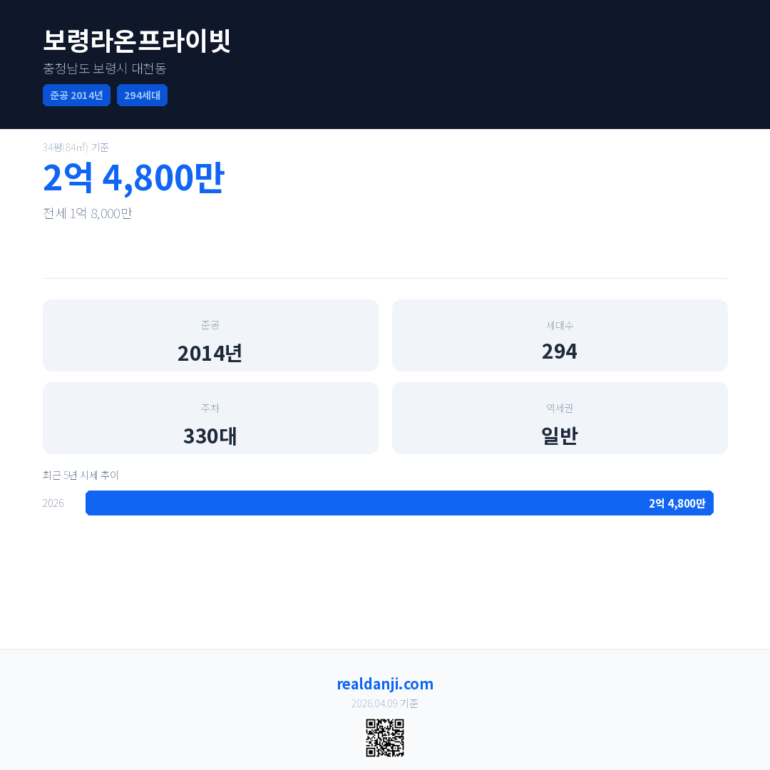 보령라온프라이빗 최근 거래가는 2억 4,800만입니다. (2026-02)