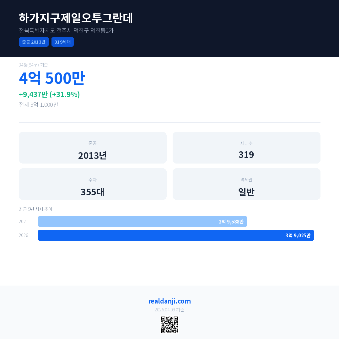 하가지구제일오투그란데 최근 거래가는 4억 500만입니다. (2026-03)