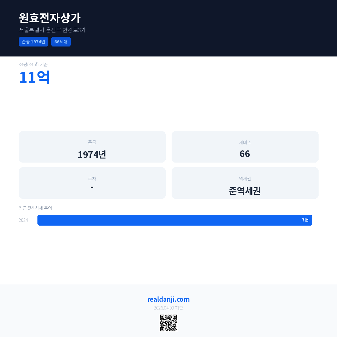 원효전자상가 최근 거래가는 11억입니다. (2025-06)