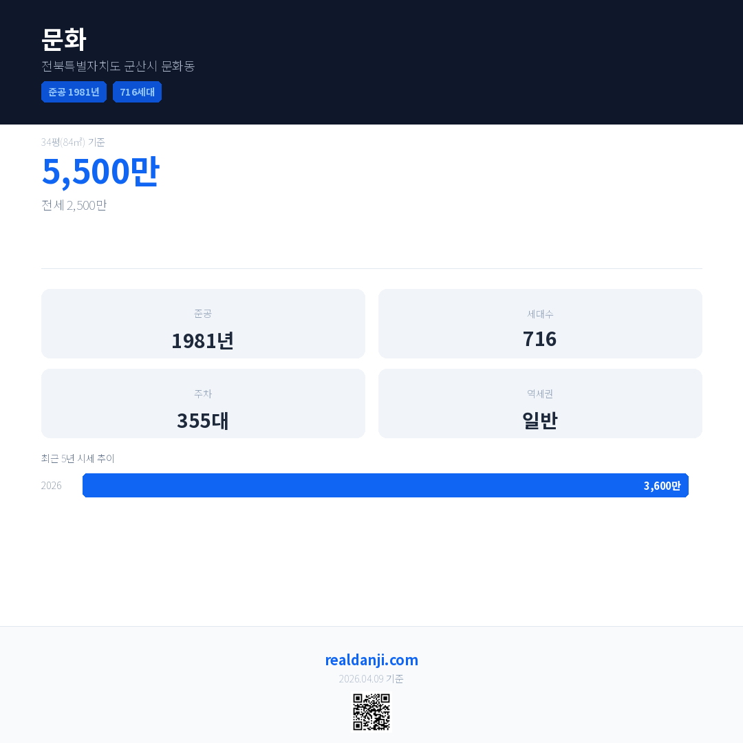 문화 최근 거래가는 5,500만입니다. (2026-03)