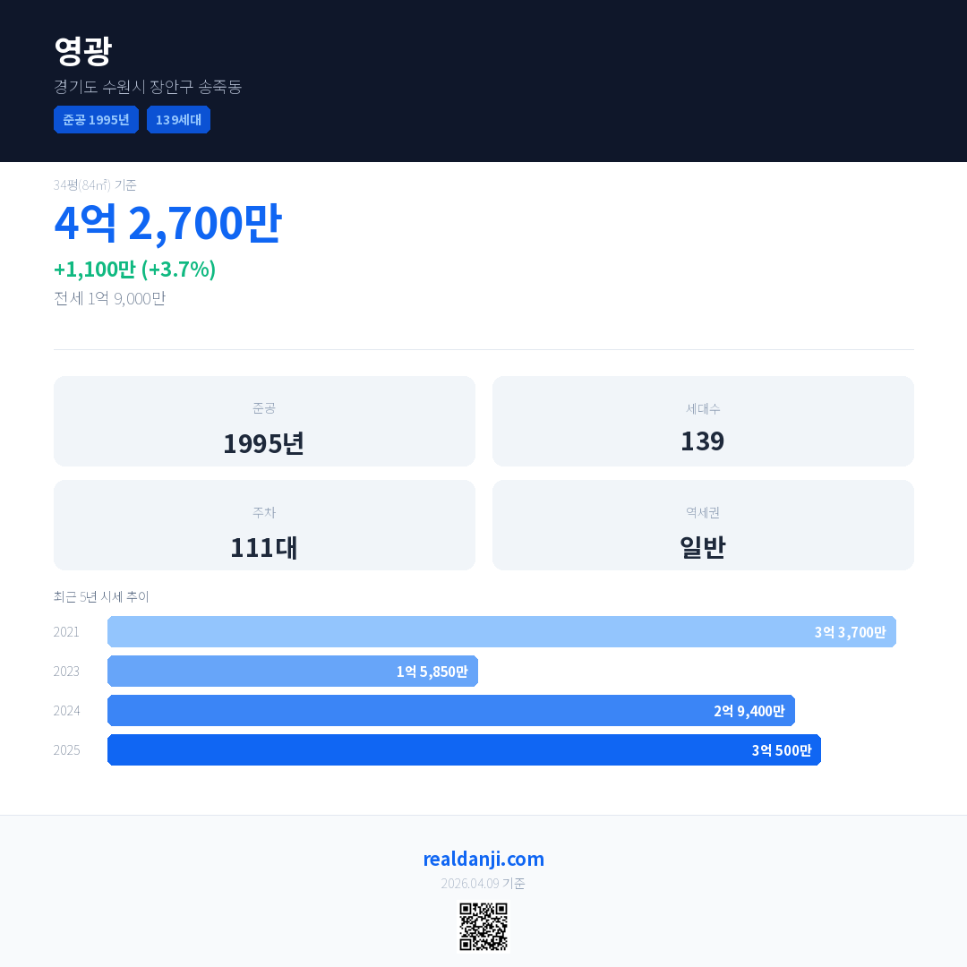 영광 최근 거래가는 4억 2,700만입니다. (2026-01)