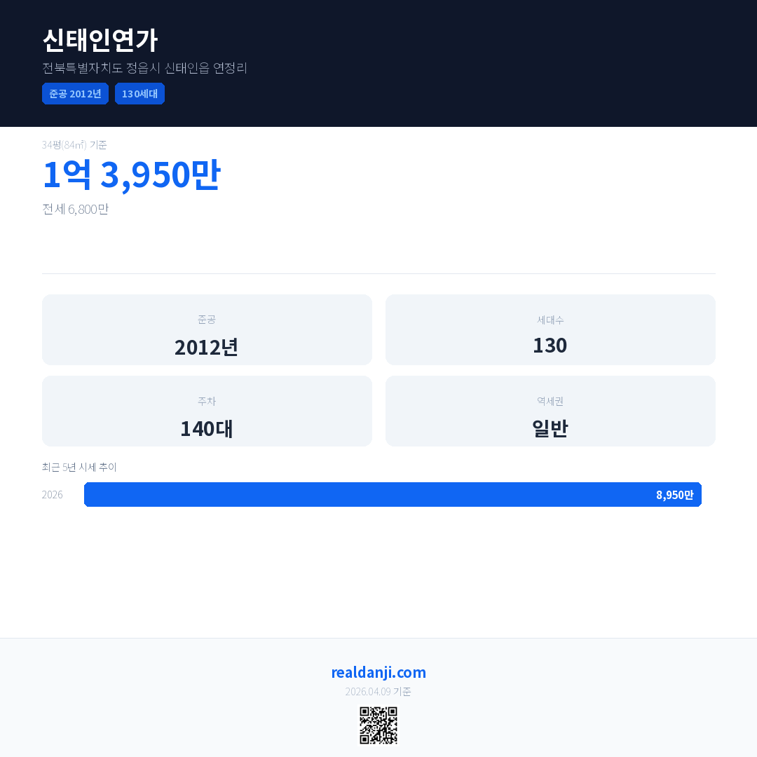 신태인연가 최근 거래가는 9,900만입니다. (2026-04)