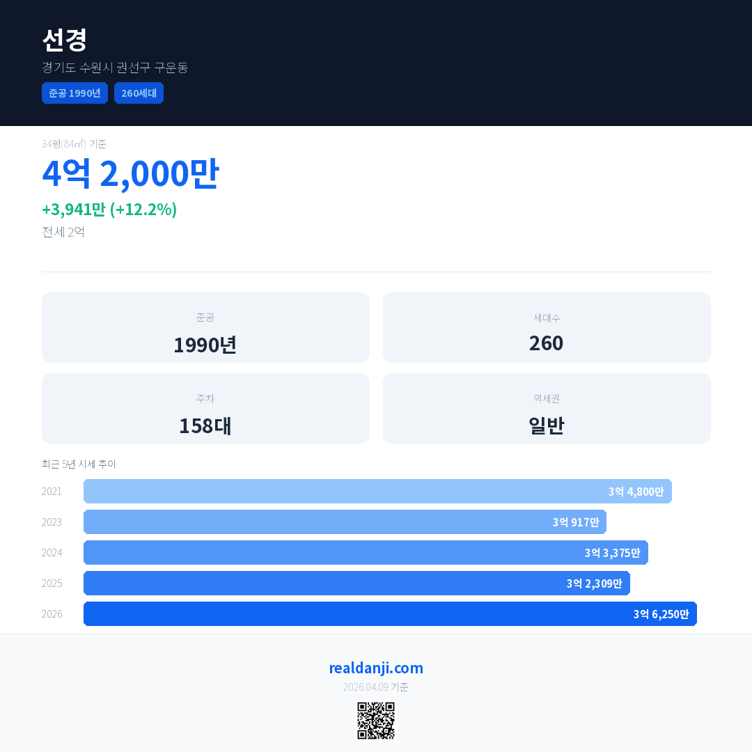 선경 최근 거래가는 4억 2,000만입니다. (2026-02)
