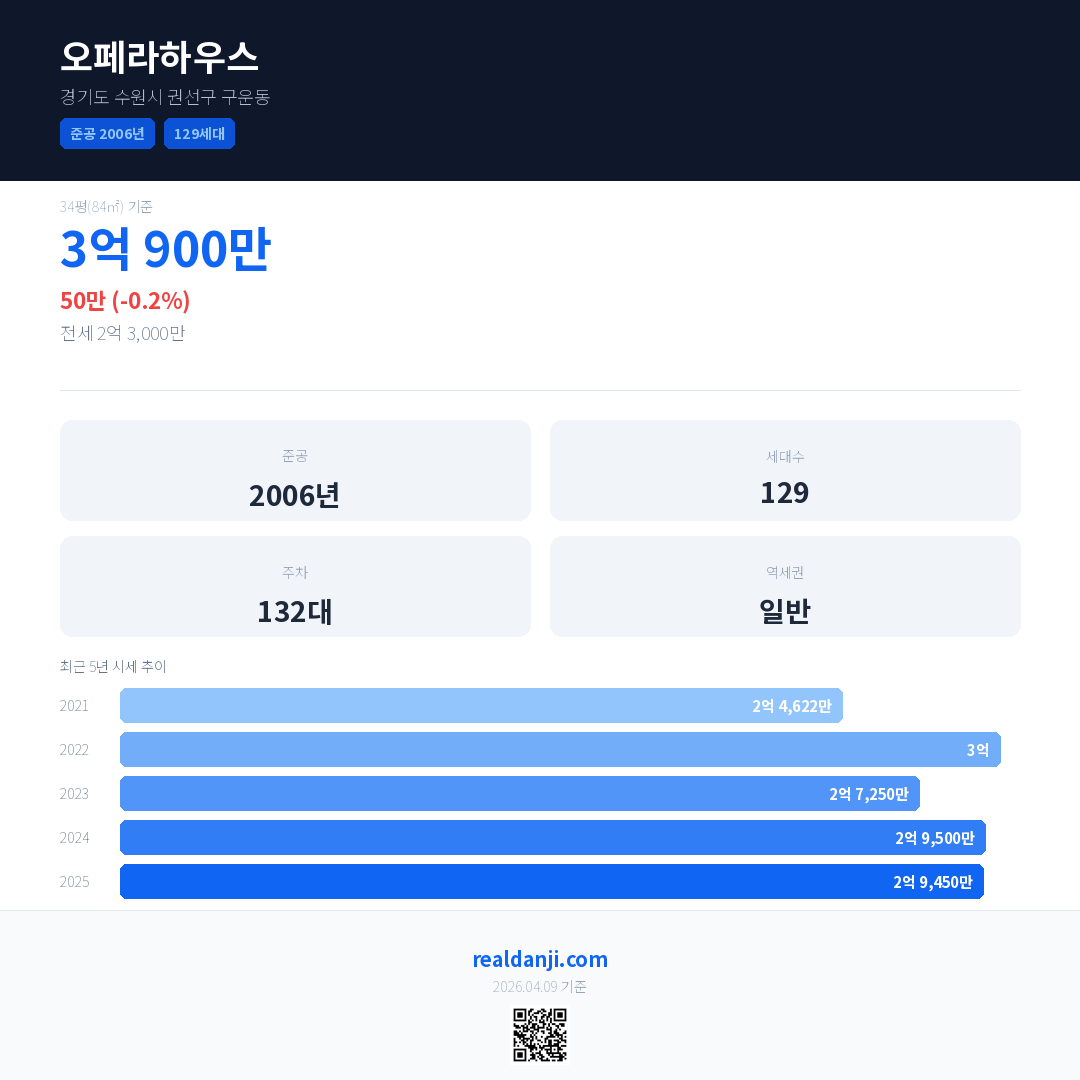 오페라하우스 최근 거래가는 3억 900만입니다. (2026-03)