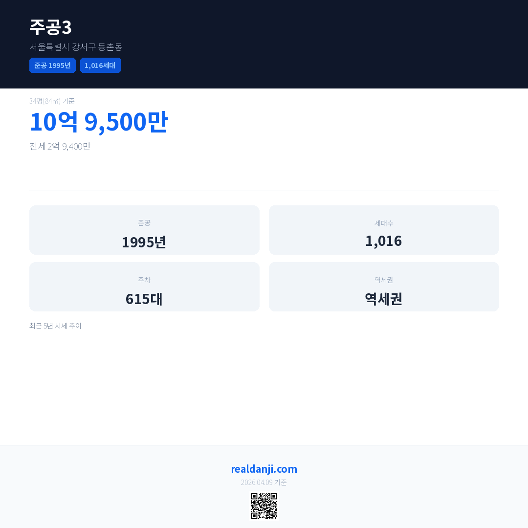 주공3 최근 거래가는 10억 9,500만입니다. (2026-03)