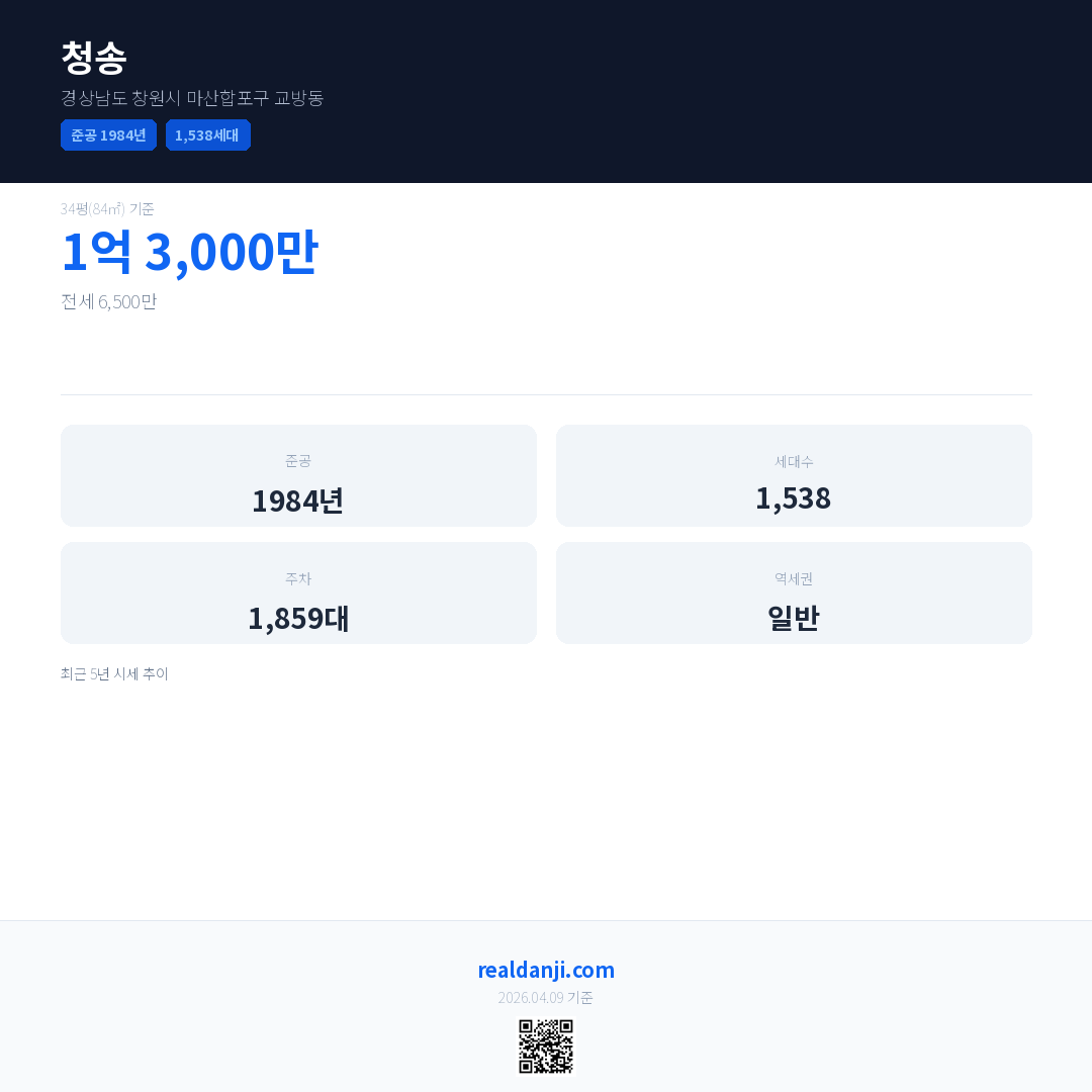 청송은(는) 1984년에 준공되었으며, 현재 42년차입니다. 총 1,538세대 규모입니다.