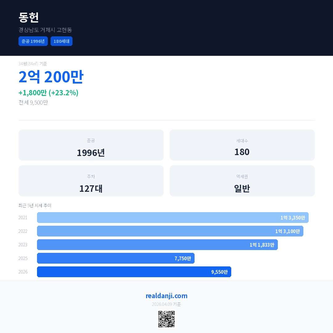 동헌 최근 거래가는 9,400만입니다. (2026-04)