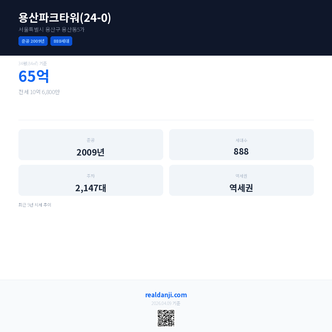 용산파크타워(24-0) 최근 거래가는 65억입니다. (2026-03)