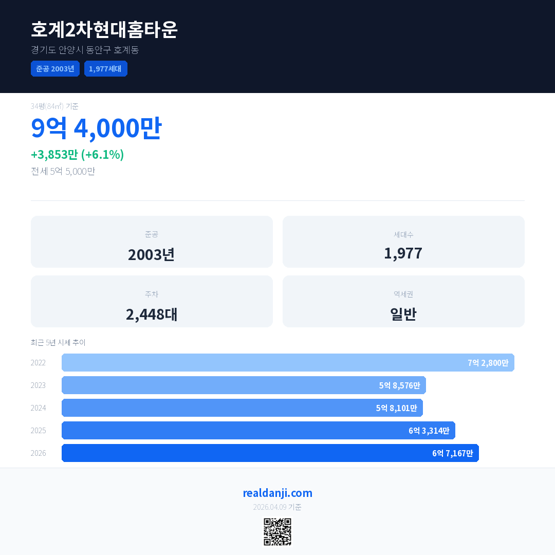 호계2차현대홈타운 최근 거래가는 9억 4,000만입니다. (2026-03)