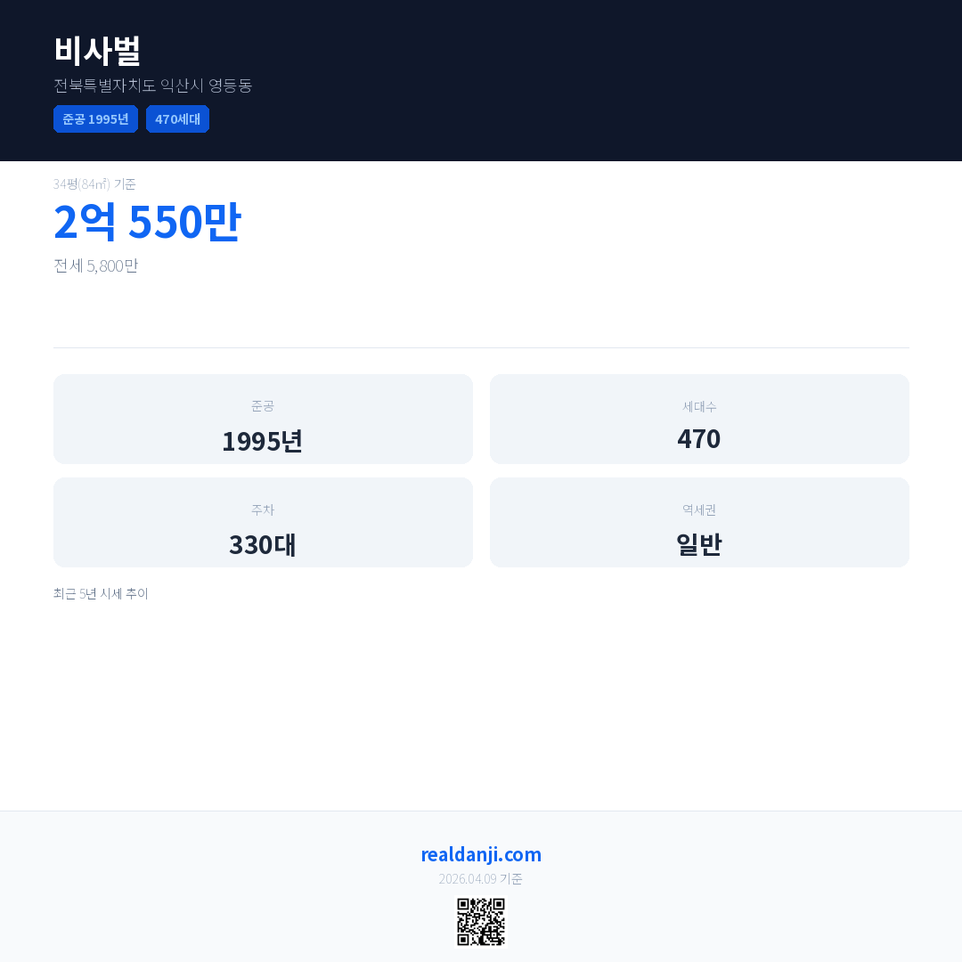 비사벌 최근 거래가는 2억 550만입니다. (2026-03)
