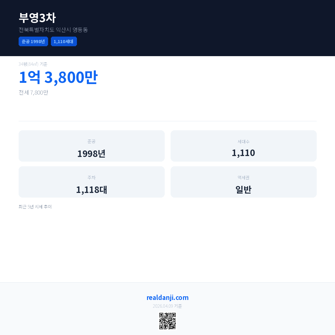 부영3차 최근 거래가는 1억 3,800만입니다. (2026-04)