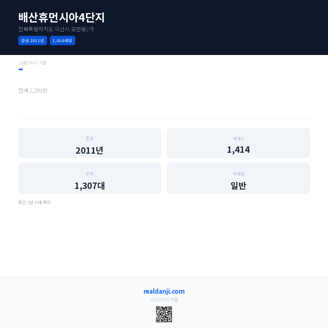 배산휴먼시아4단지은(는) 2011년에 준공되었으며, 현재 15년차입니다. 총 1,414세대 규모입니다.