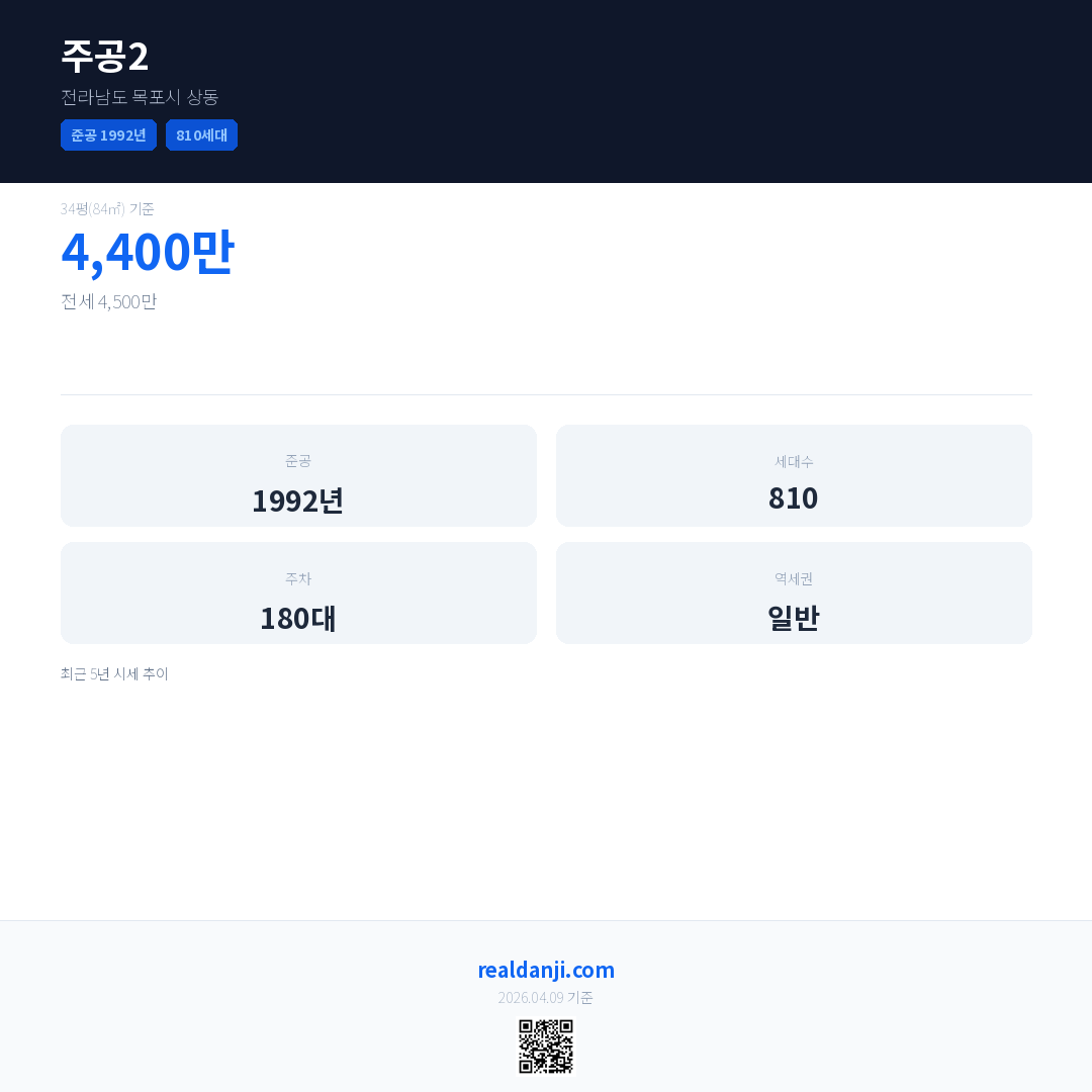 주공2은(는) 1992년에 준공되었으며, 현재 34년차입니다. 총 810세대 규모입니다.