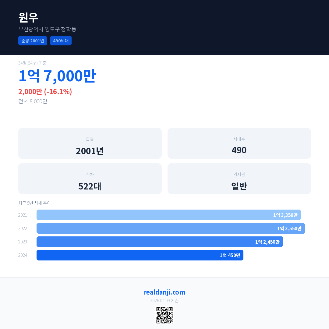 원우 최근 거래가는 1억 7,000만입니다. (2025-07)