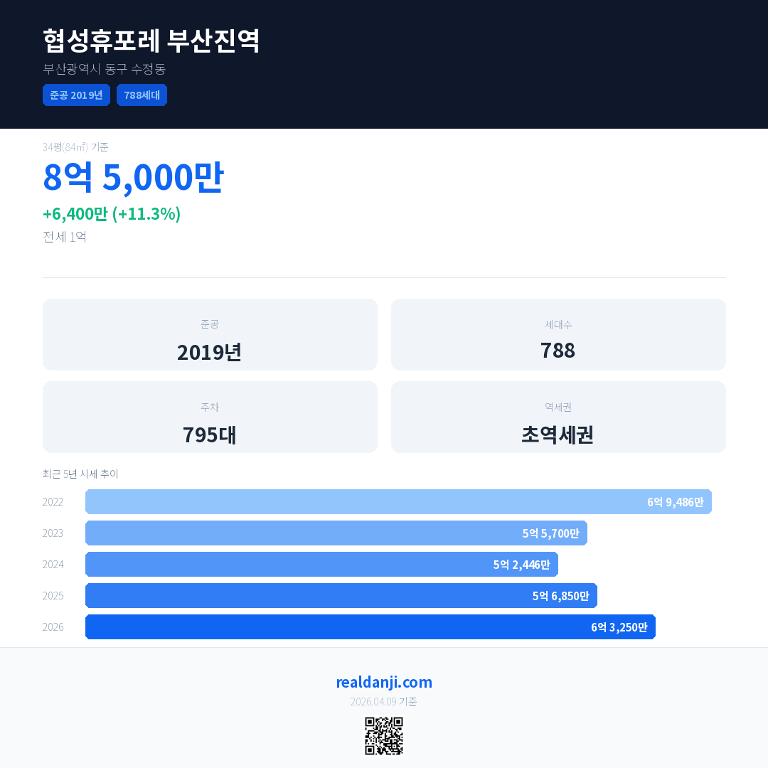 협성휴포레 부산진역 최근 거래가는 5억입니다. (2026-03)
