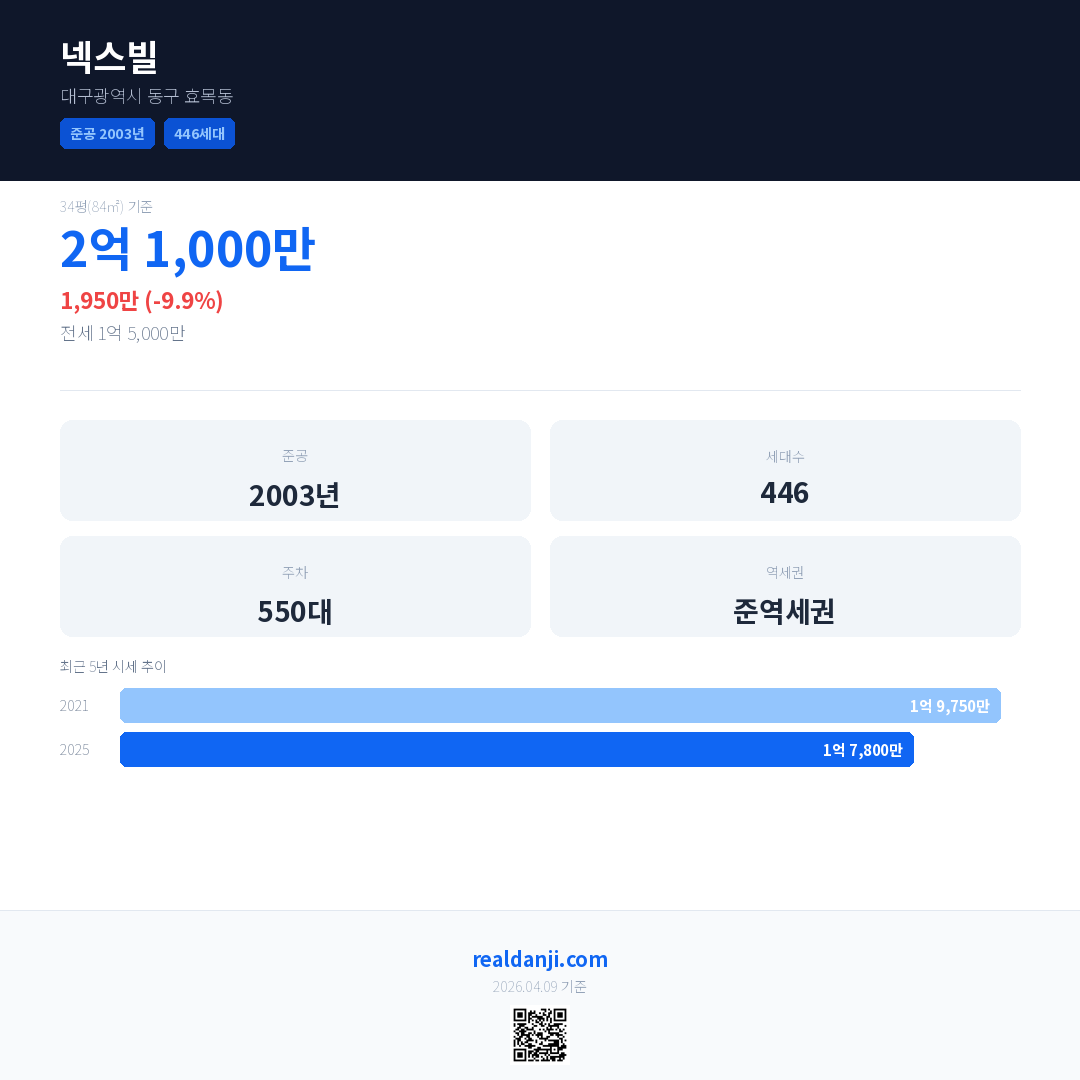 넥스빌 최근 거래가는 2억 1,000만입니다. (2025-02)