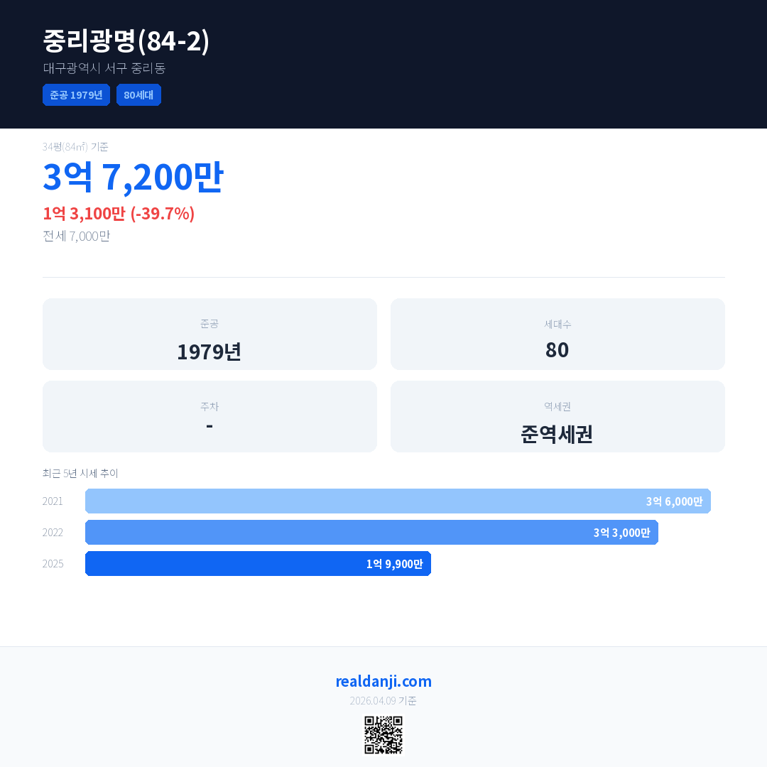 중리광명(84-2) 최근 거래가는 7,000만입니다. (2026-04)
