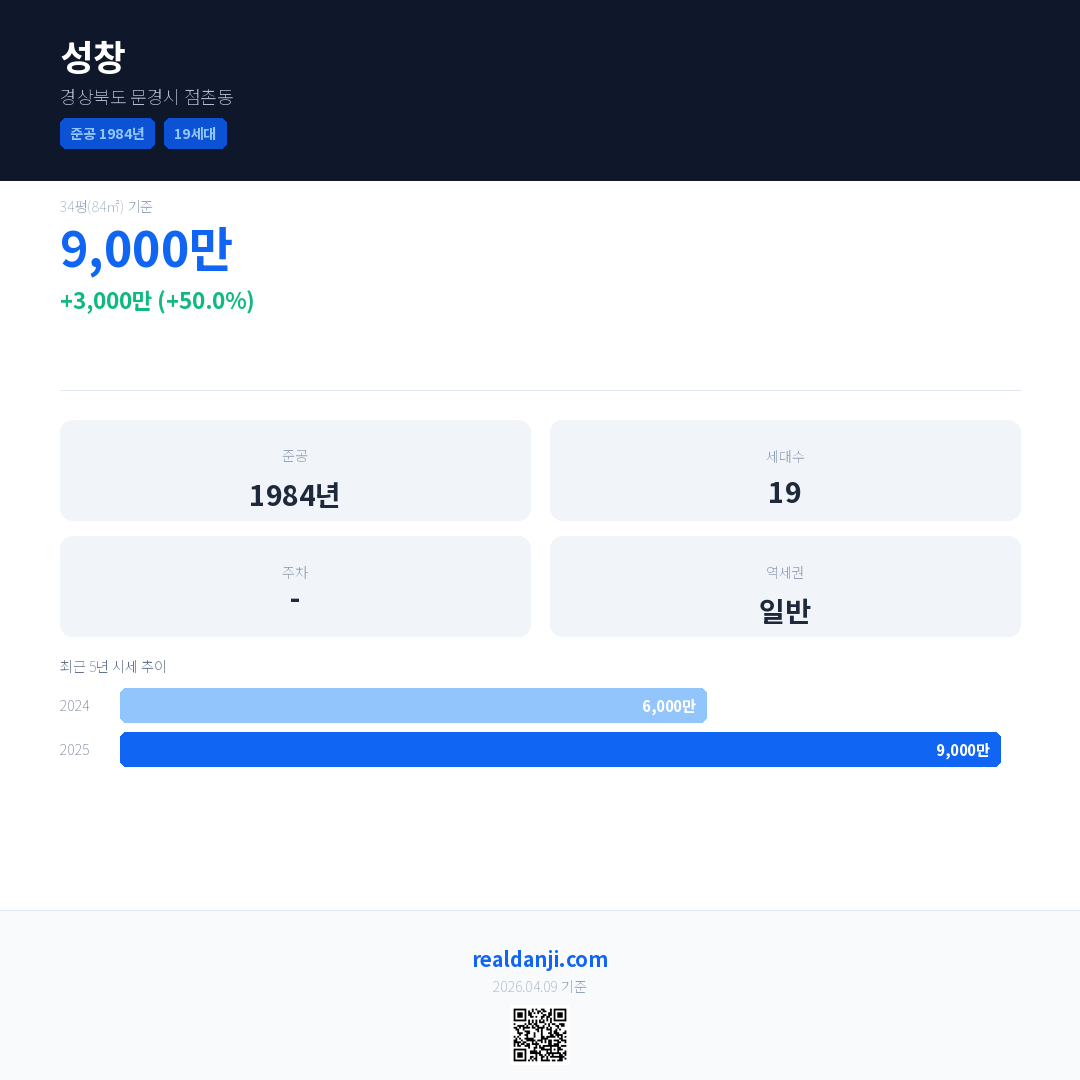 성창 최근 거래가는 9,000만입니다. (2025-09)