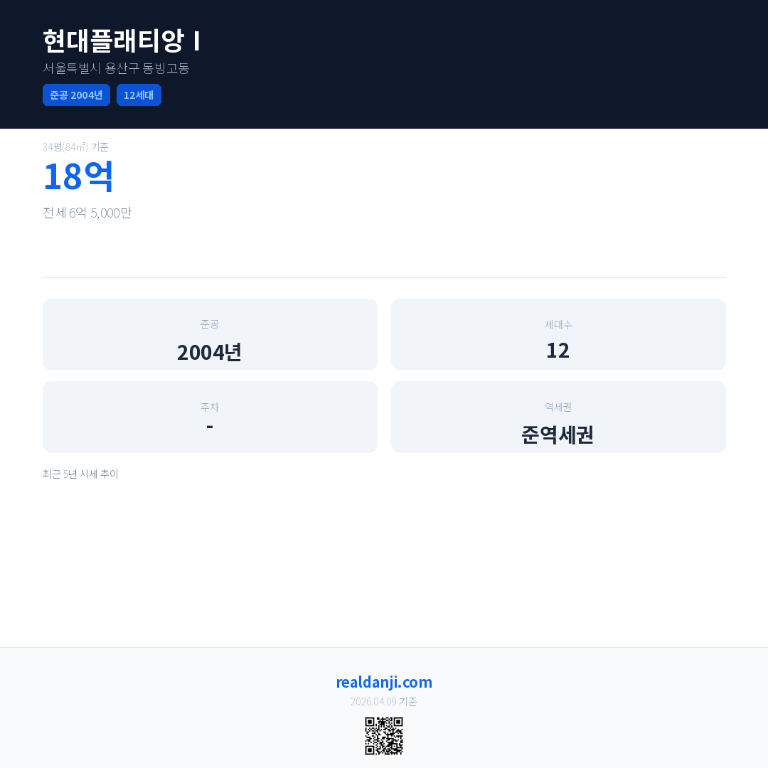현대플래티앙Ⅰ 최근 거래가는 18억입니다. (2024-12)