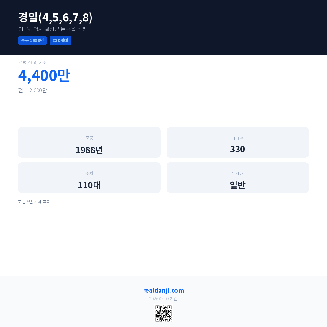 경일(4,5,6,7,8) 최근 거래가는 8,300만입니다. (2025-12)