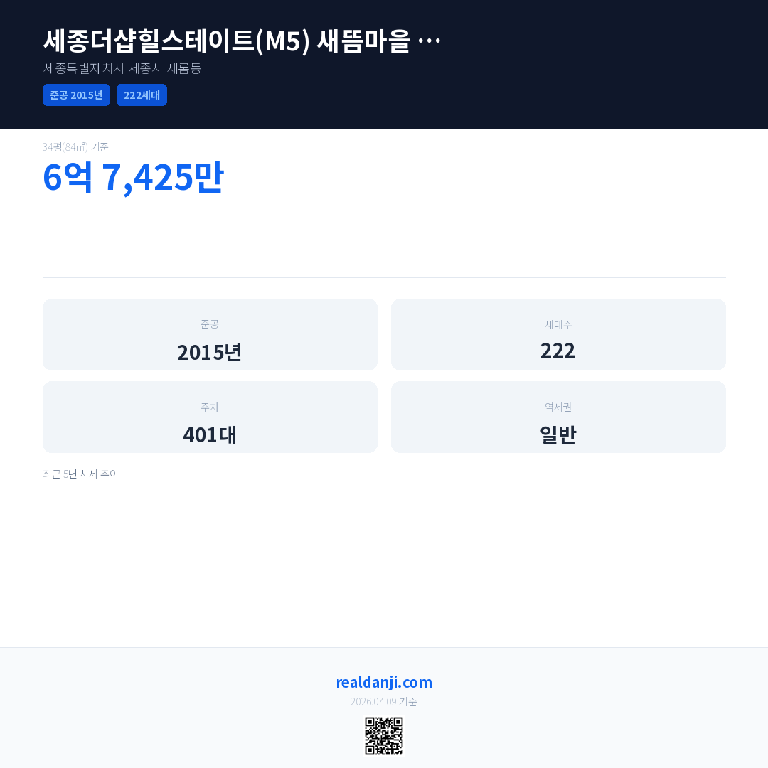 세종더샵힐스테이트(M5) 새뜸마을 14단지 최근 거래가는 6억 7,425만입니다. (2017-05)