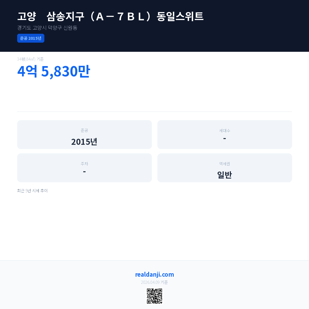 고양 삼송지구(A-7BL)동일스위트은(는) 2015년에 준공되었으며, 현재 11년차입니다.