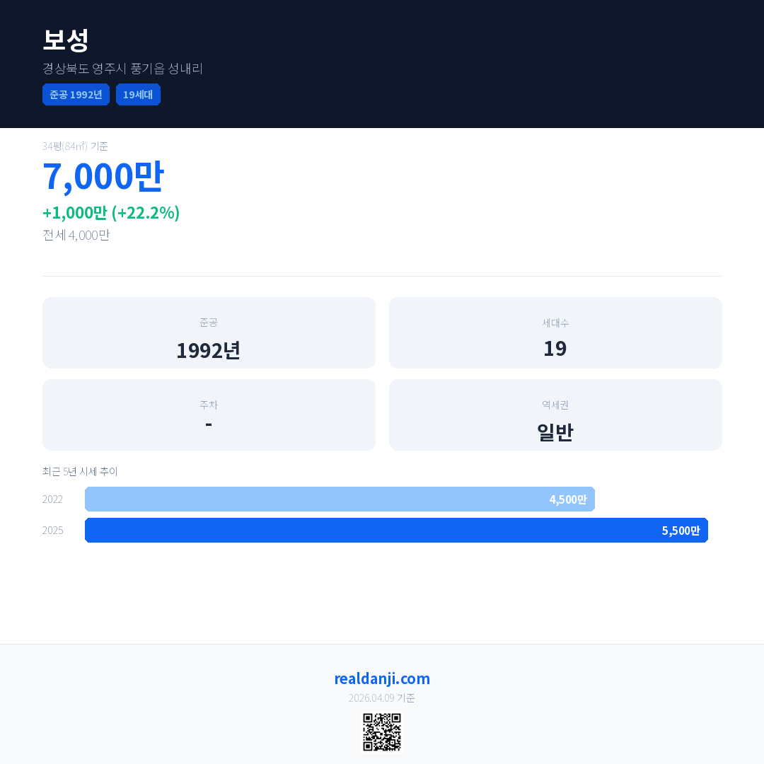 보성 국민평형 기준 2025년 평균 거래가는 5,500만으로, 전년 대비 22.2% 상승 했습니다.