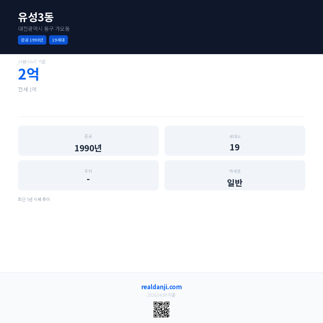 유성3동 최근 거래가는 2억입니다. (2020-12)