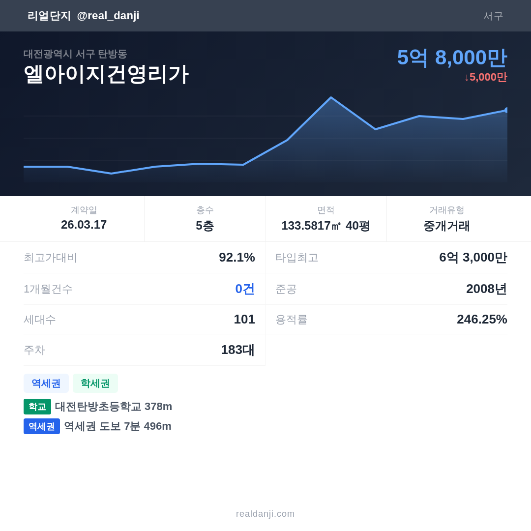 | 2026.03.17 | 134㎡ | 5층 | 5억 8,000만 |