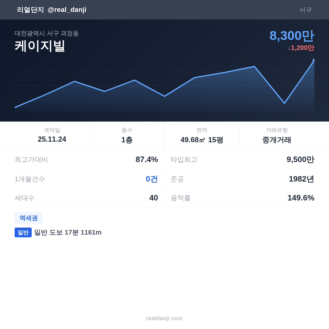| 2025.11.24 | 50㎡ | 1층 | 8,300만 |