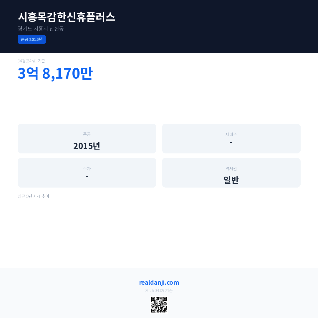 시흥목감한신휴플러스 최근 거래가는 3억 8,170만입니다. (2017-07)