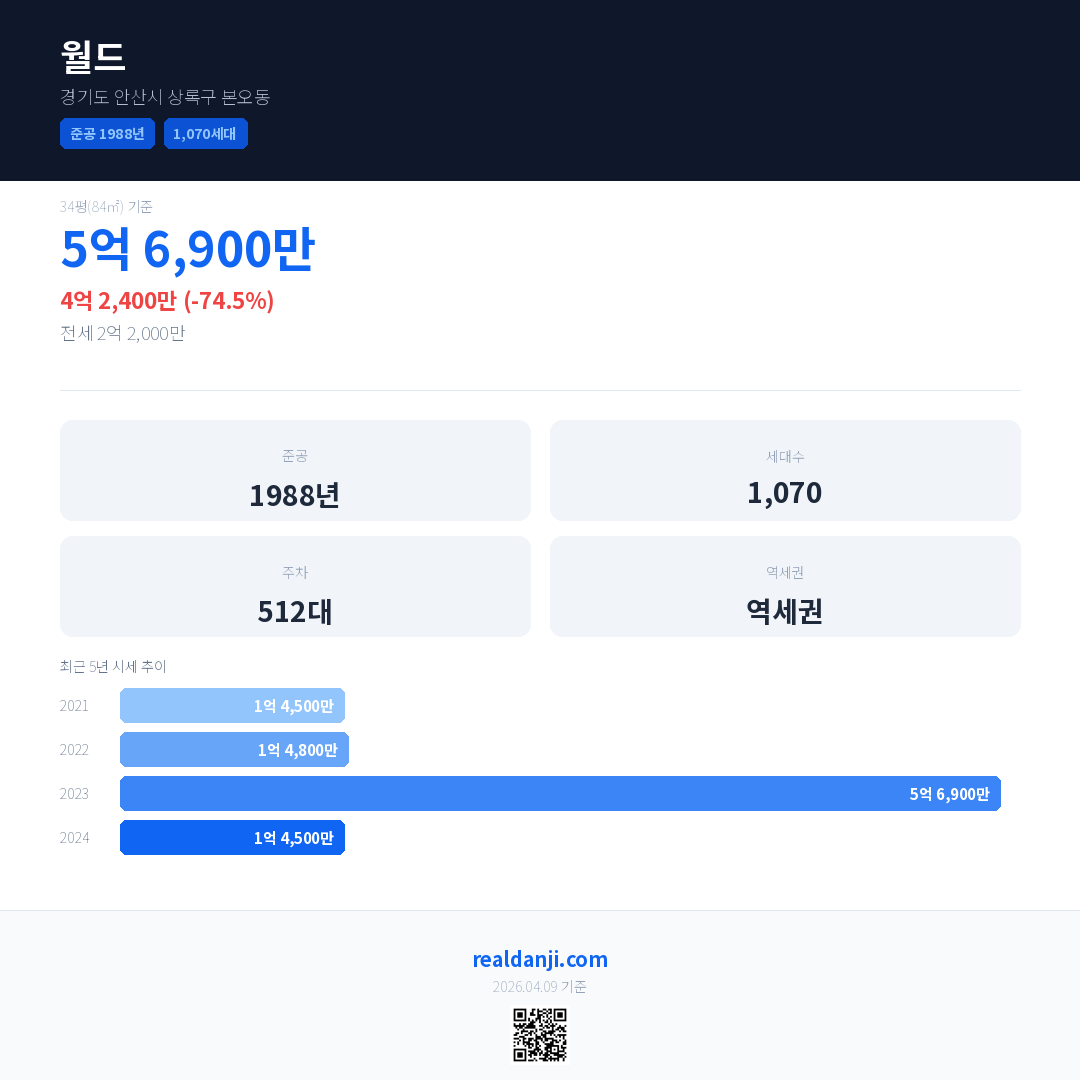 월드 최근 거래가는 5억 6,900만입니다. (2026-02)