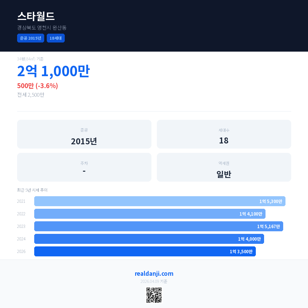 스타월드 최근 거래가는 2억 1,000만입니다. (2026-04)